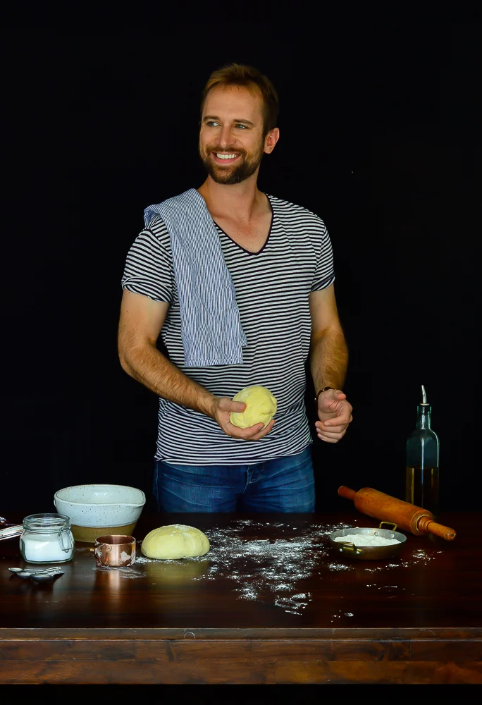 When the dough has finished rising, turn it out onto a cornmeal-dusted work surface, divide it in half, and form each half into a ball. Like in Step 1, coat each ball of dough with a tiny bit of olive oil and cover them with a paper towel. Let them rise of 20 minutes.